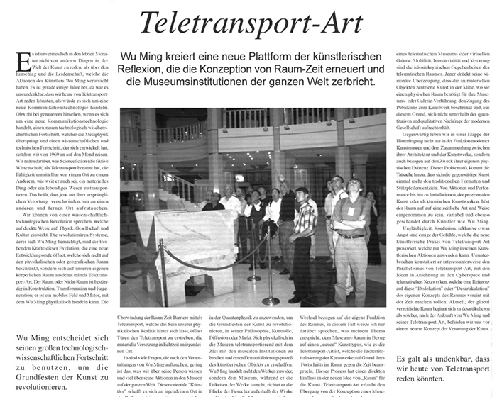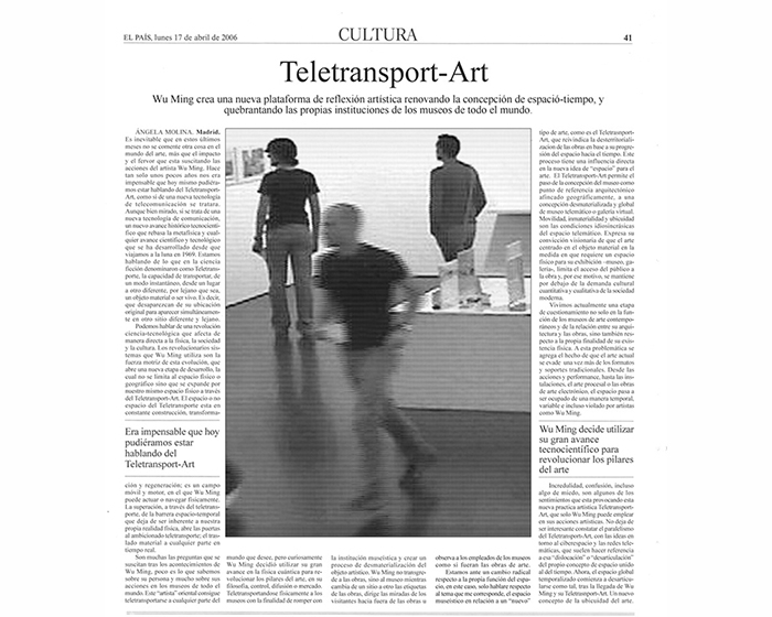 En pleno comienzo del siglo XXI, el “artista” Wu Ming rompe con la barrera espacio-tiempo, sacando de la ficción lo que parecía ser solo una fantasía, la Teletransportación. Conocido como la capacidad de transportar de un modo instantáneo, un objeto, materia o ser vivo, de un lugar a otro por muy lejano que sea. Hay quien, ya le considera como el sucesor de Einstein. Su genialidad con la física cuántica y su desarrollo sobre la computación cuántica, ha dejado boquiabiertos a todos los grandes físicos y científicos de todo el mundo. Con una gran expectación en la evolución humana y una gran revolución social.